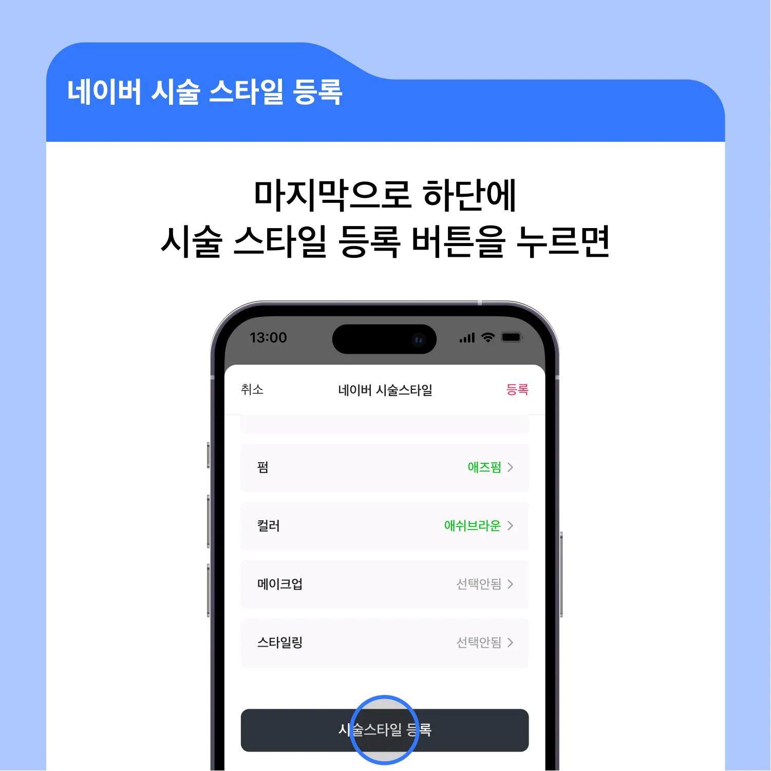 마지막으로 하단에 시술 스타일 등록 버튼을 눌러주시면 시술 스타일이 등록됩니다.