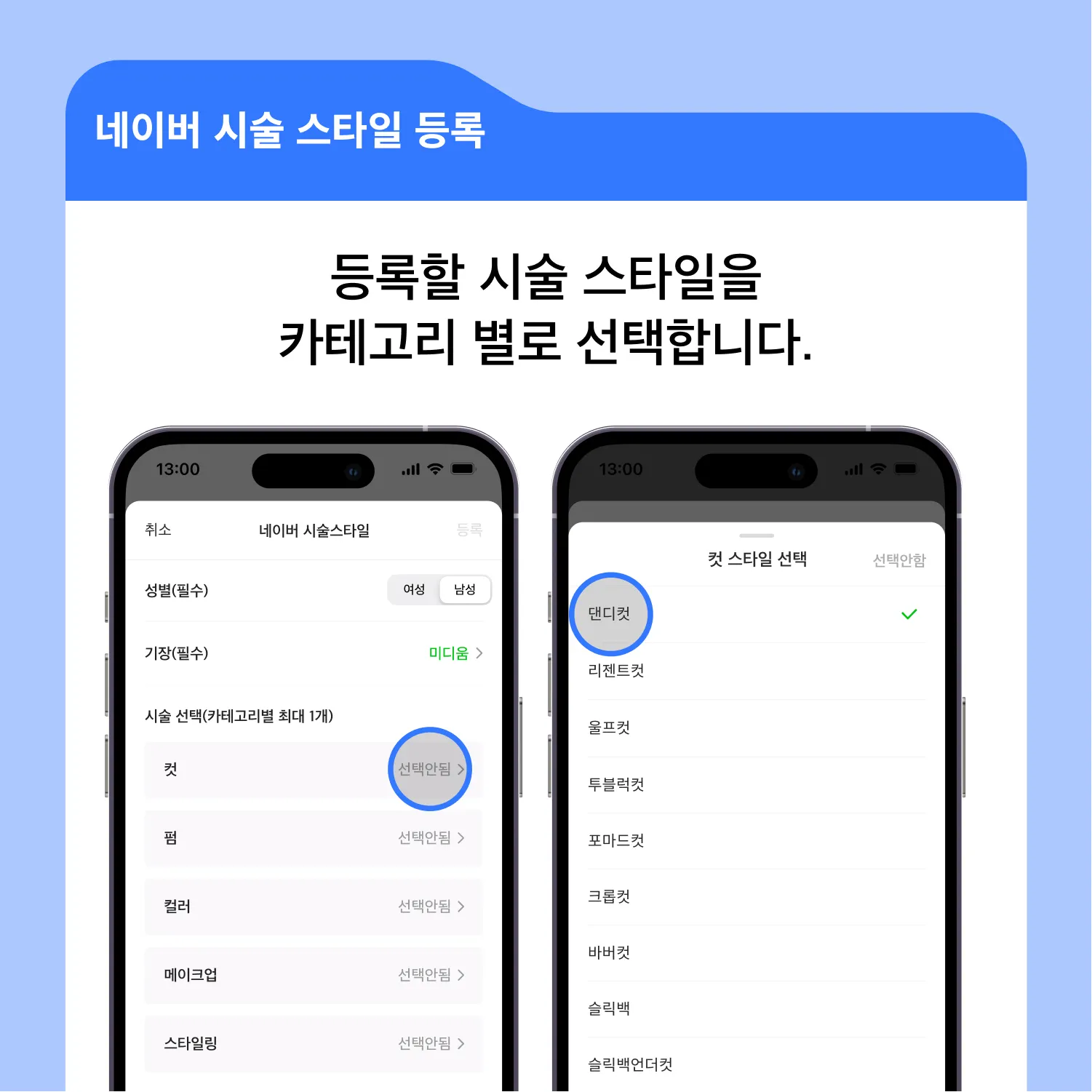 등록할 시술의 스타일을 카테고리 별로 선택해 주세요.
