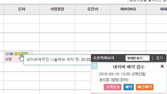 3. 전화예약등으로 코드컴에 입력된 예약정보가 네이버예약센터에 반영되어 동일시간 예약 방지