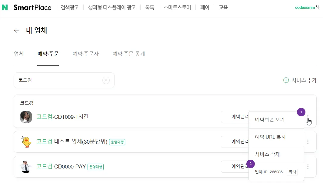 이제 네이버로 예약을 진행해보시고 아래와 같이 예약알림창과 코드컴 현황판에 예약이 정상적으로 연동되어 등록되는지 확인하시면 연동설정의 모든 과정은 마무리 됩니다.