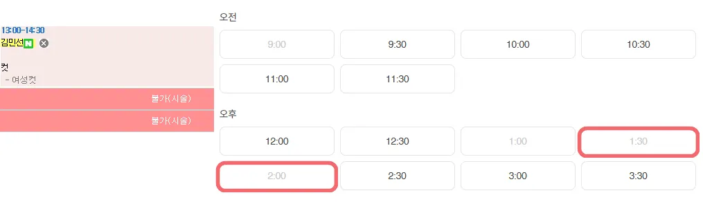 시술시간 연동 (예약시 시술시간만큼 자동으로 예약불가 설정)