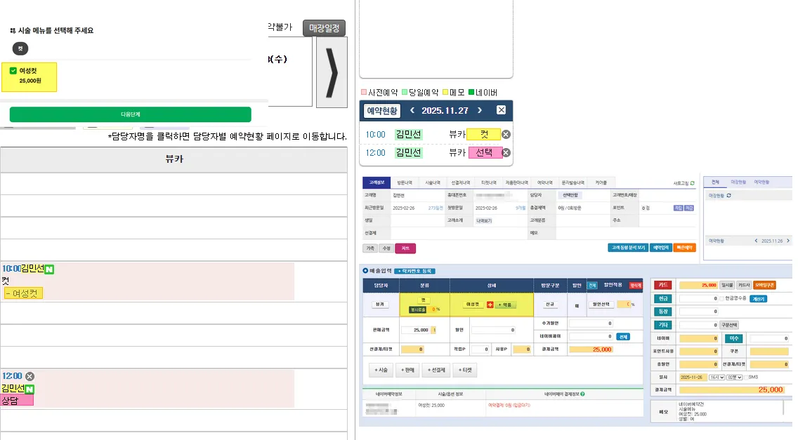 시술메뉴를 연동하면, 네이버 에약 시 해당 메뉴로 매출이 자동 입력되어 보여집니다.