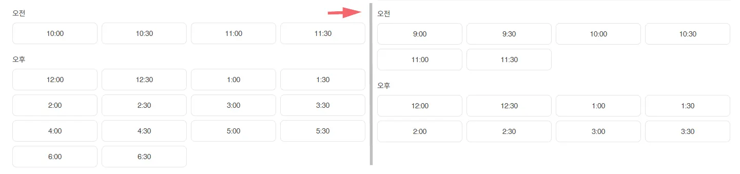 (오전 10시부터 오후 7시까지 예약을 받으려면 10:00~19:30 으로 설정해주세요)