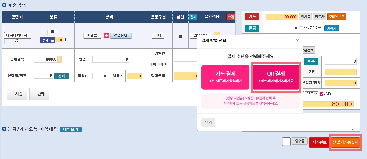 [단말기연동결제] 버튼을 선택합니다.