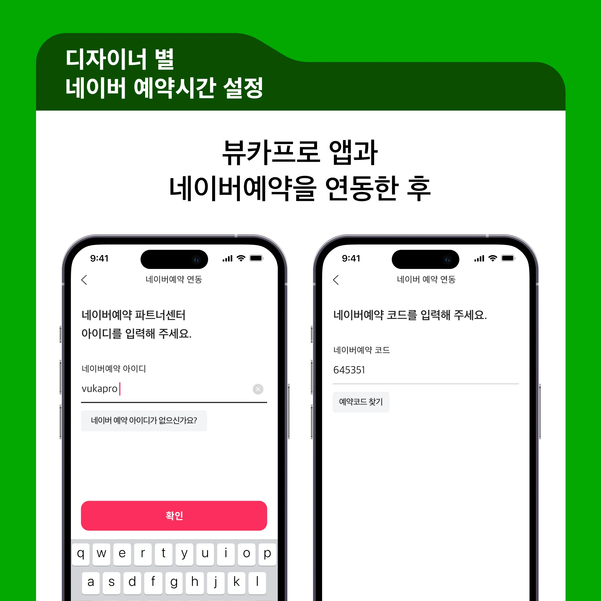 [전체]탭에서 ‘네이버 연동’을 눌러 뷰카 앱과 네이버 예약을 연동해 주시고