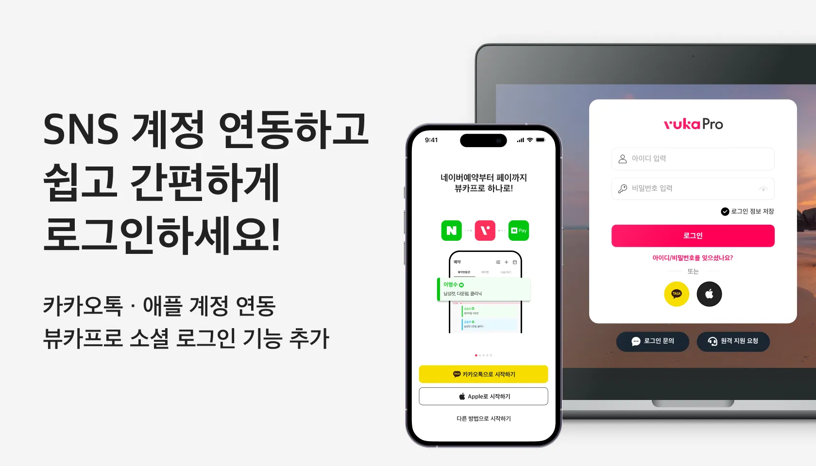 뷰카프로를 간편하게 로그인하는 소셜 로그인 기능이 추가되었습니다.