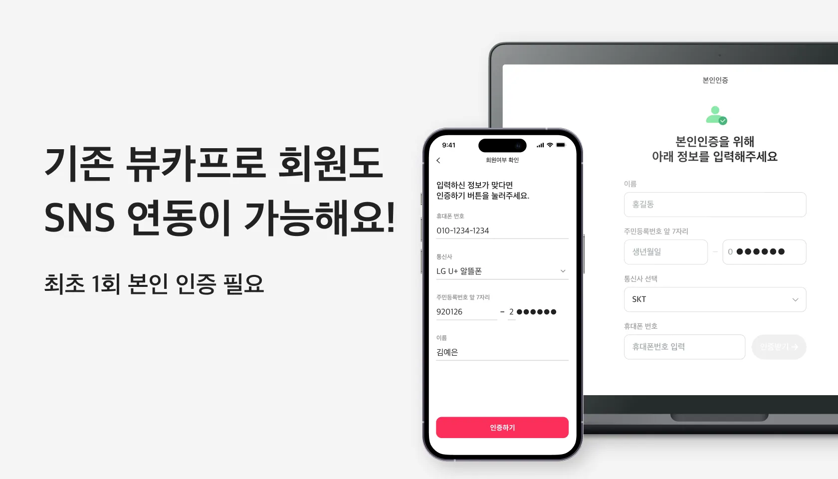 소셜 로그인 연동 시 최초 1회 본인 인증 이 필요합니다.