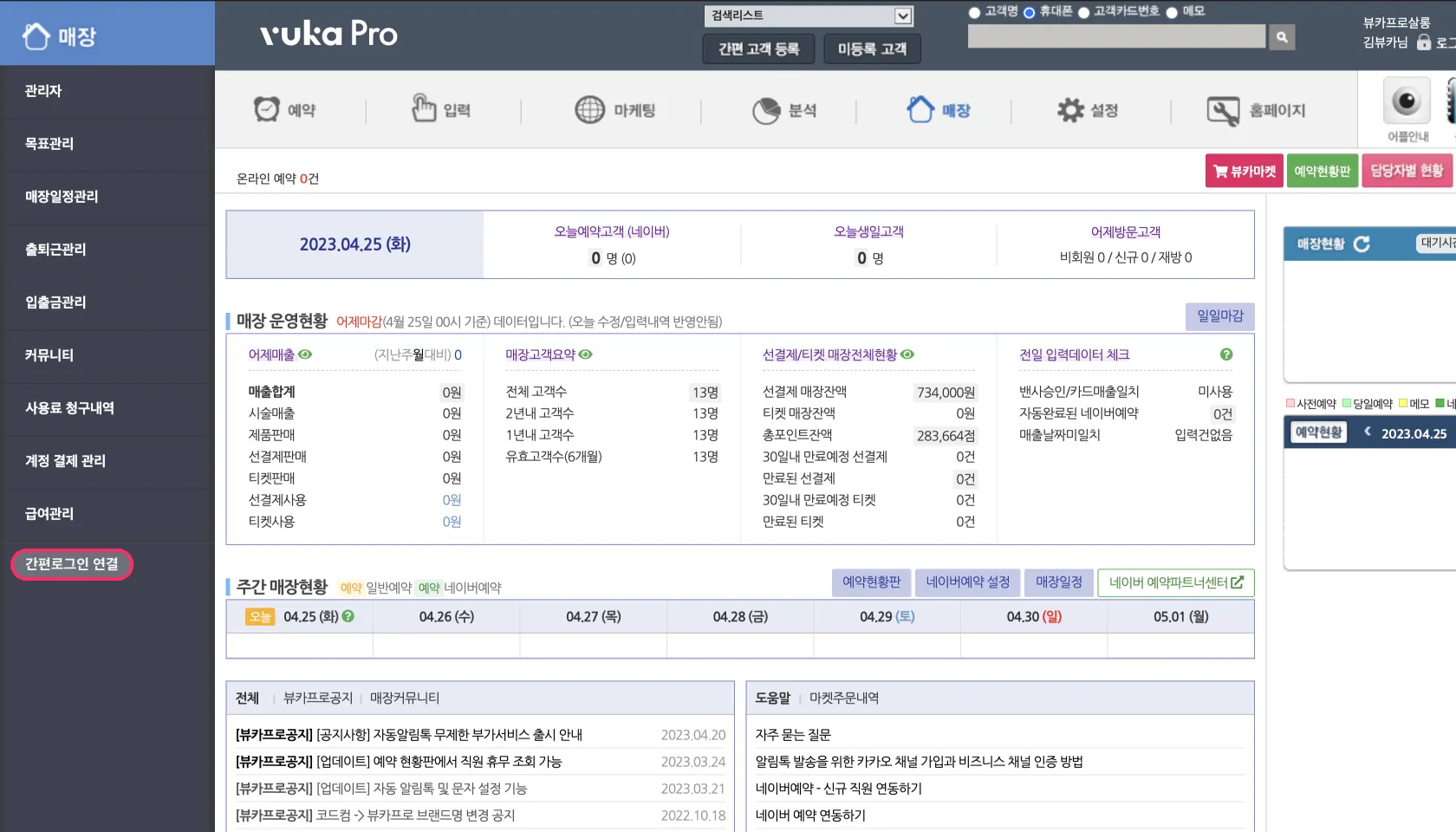 ② 매장 탭 > 간편 로그인 연결 클릭