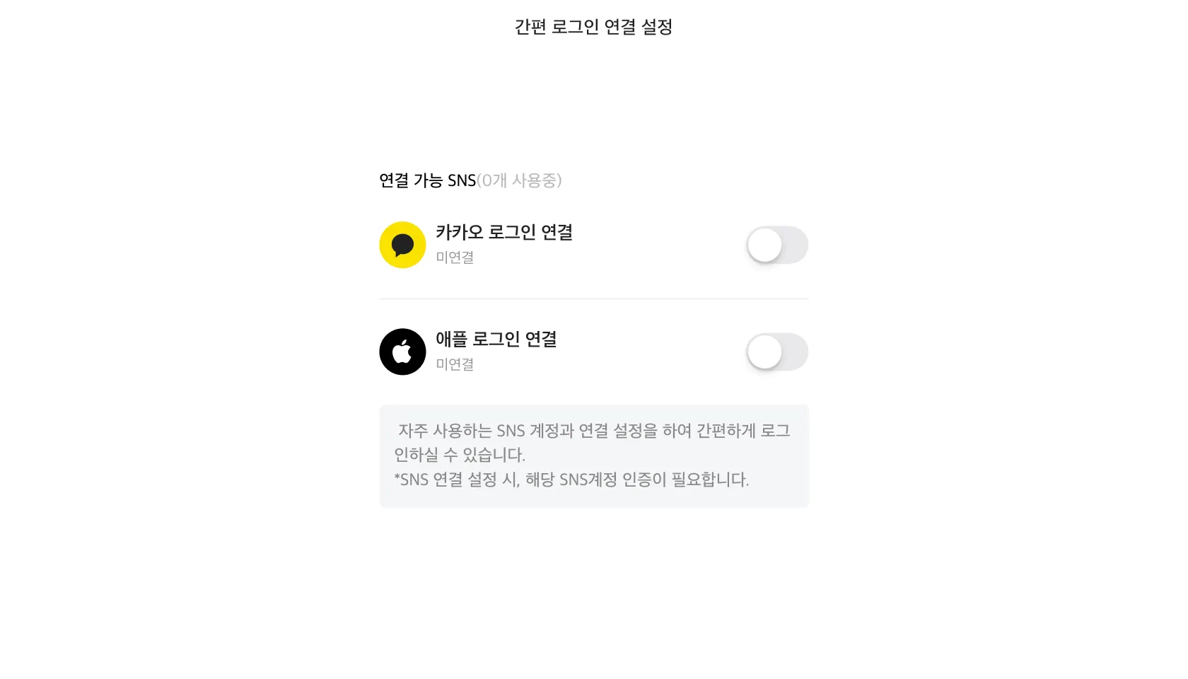 [기존 로그인 시 간편 로그인 연결 설정 방법]