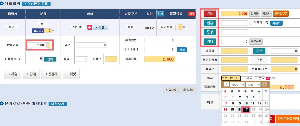 → 실제 사용한 날짜 기준으로 다시 매출 재입력
