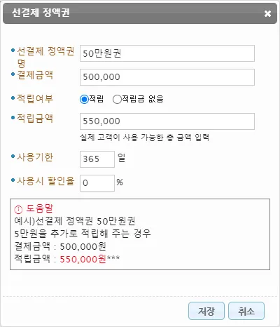 정액권(선결제) 만들기