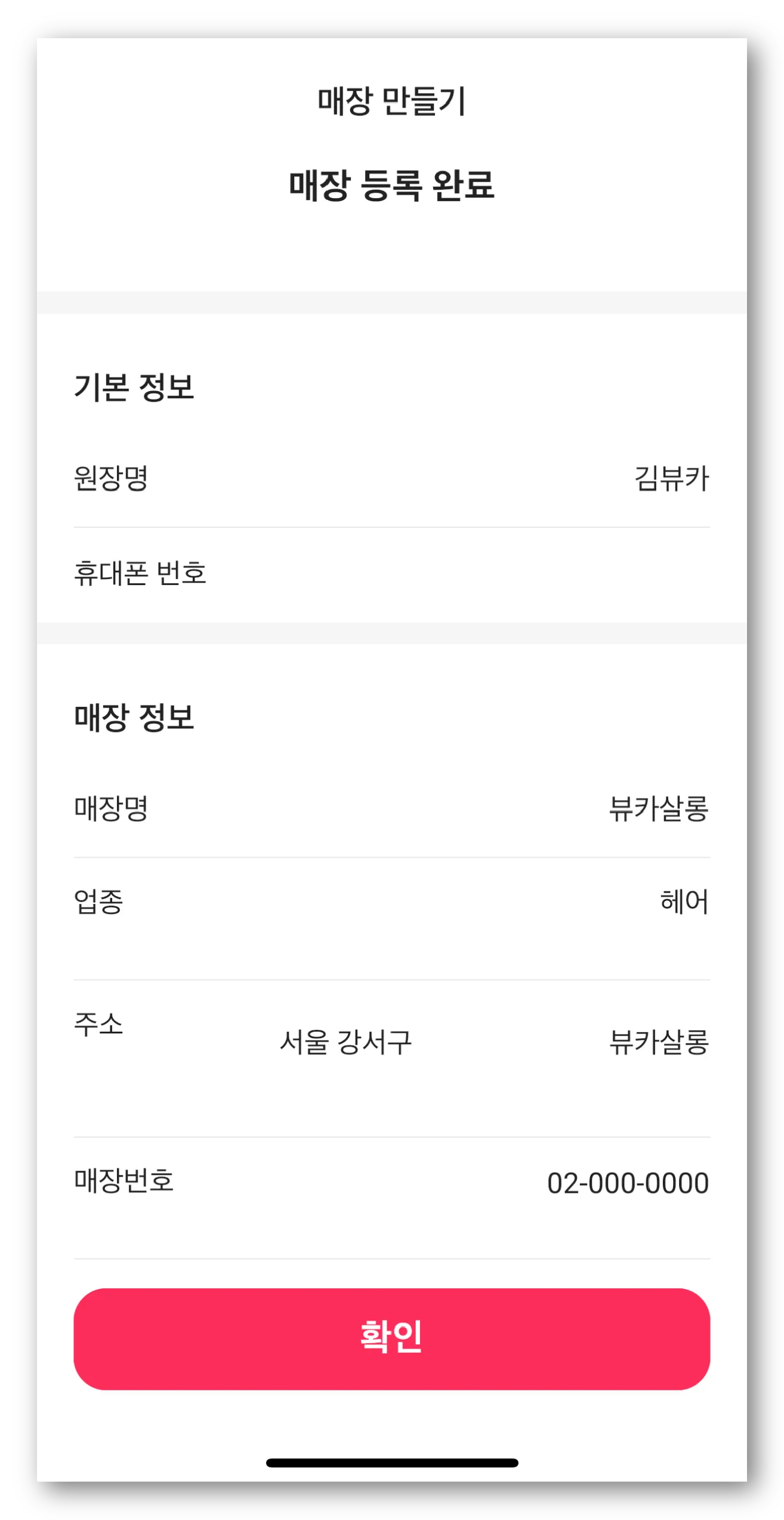 매장 등록이 완료되었습니다!
