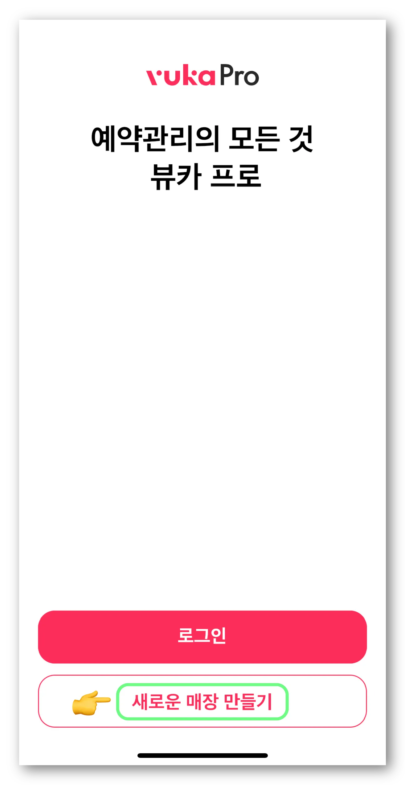뷰카 앱을 다운로드 후 하단의 ‘새로운 매장 만들기’를 눌러주세요.