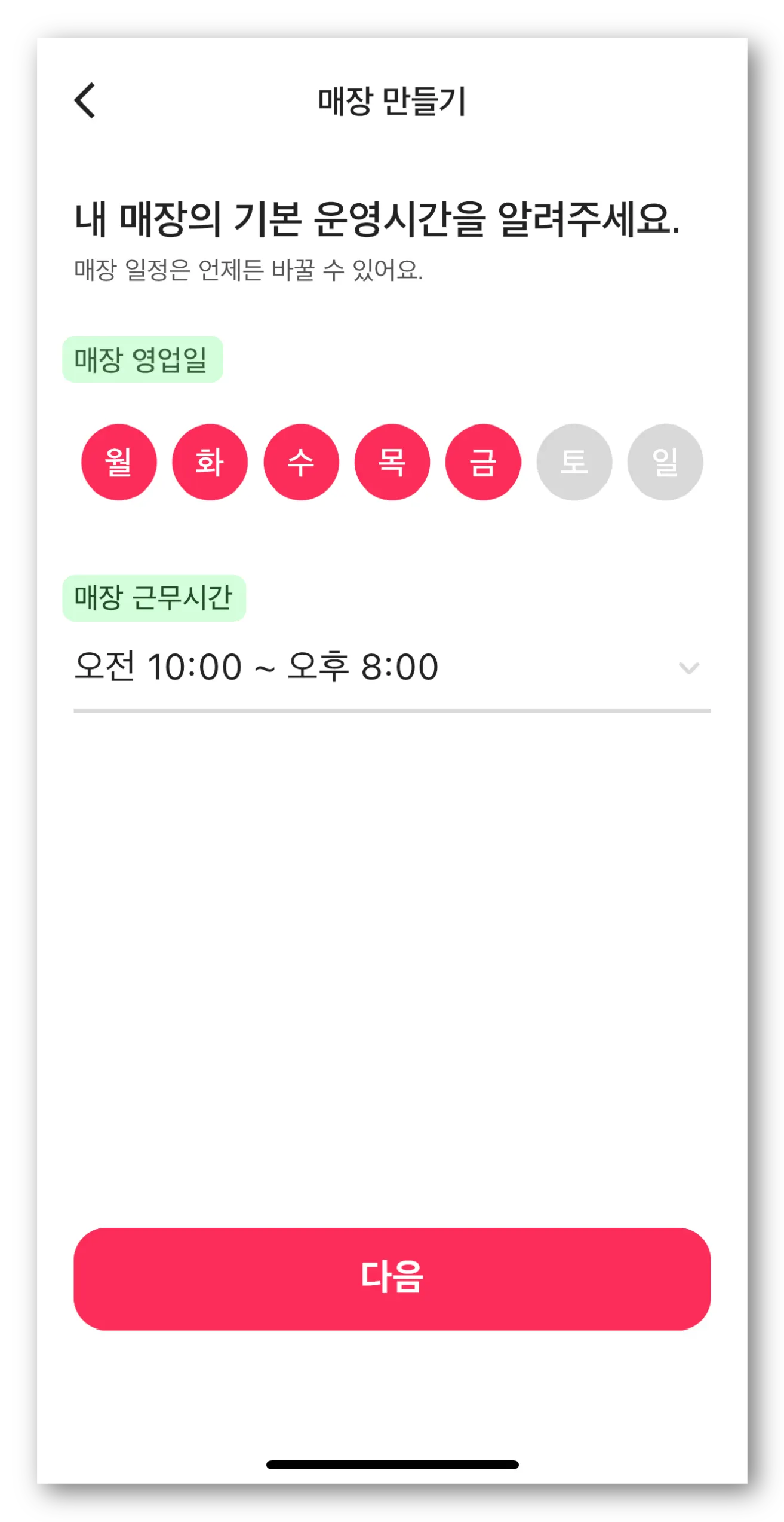 그다음 매장 기본 운영시간을 입력 후 다음을 눌러주시면…