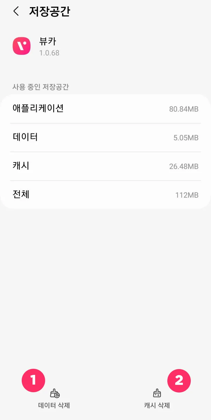 하단에 데이터 삭제를 누른 뒤 캐쉬 삭제를 눌러 주세요.