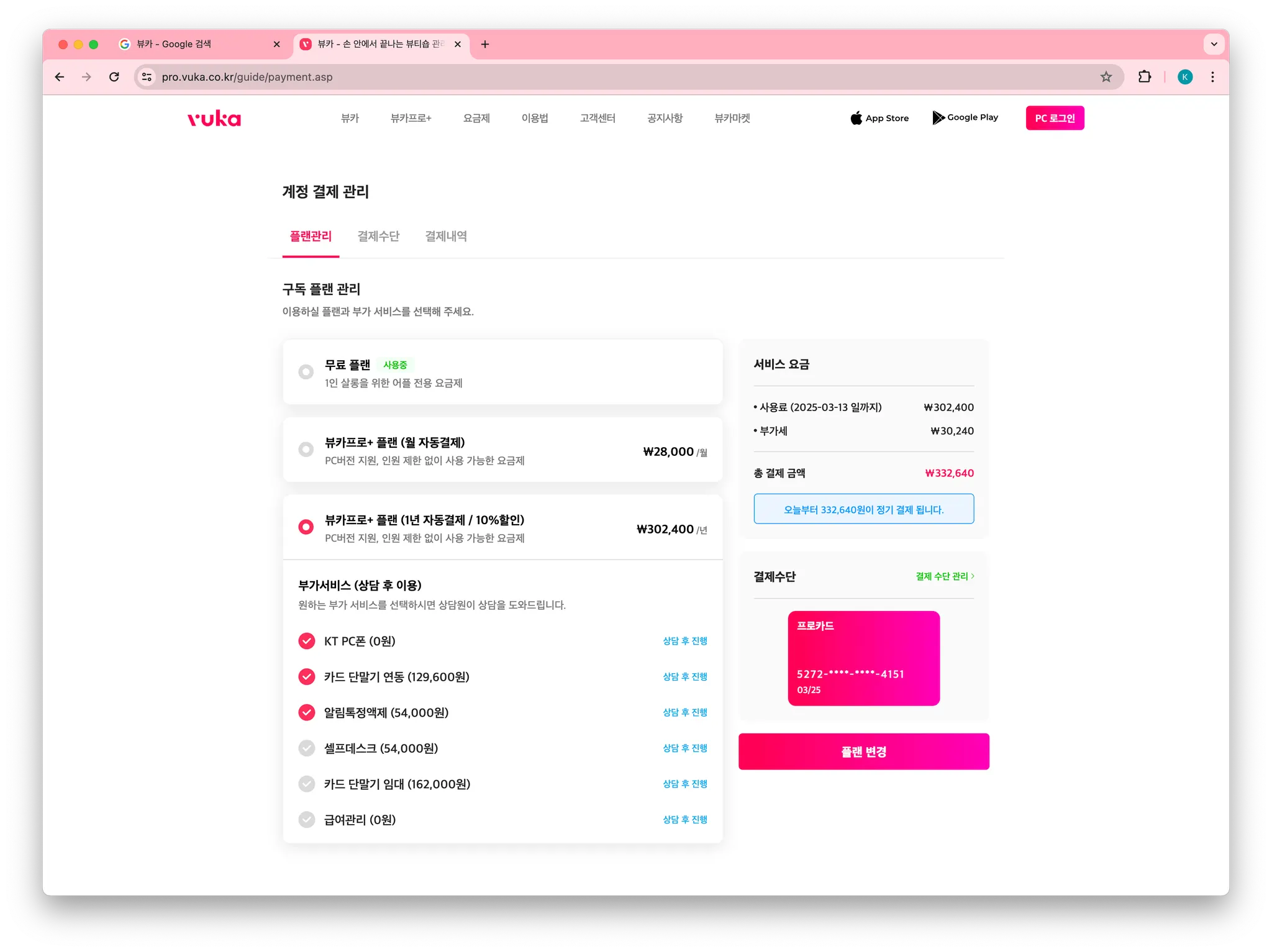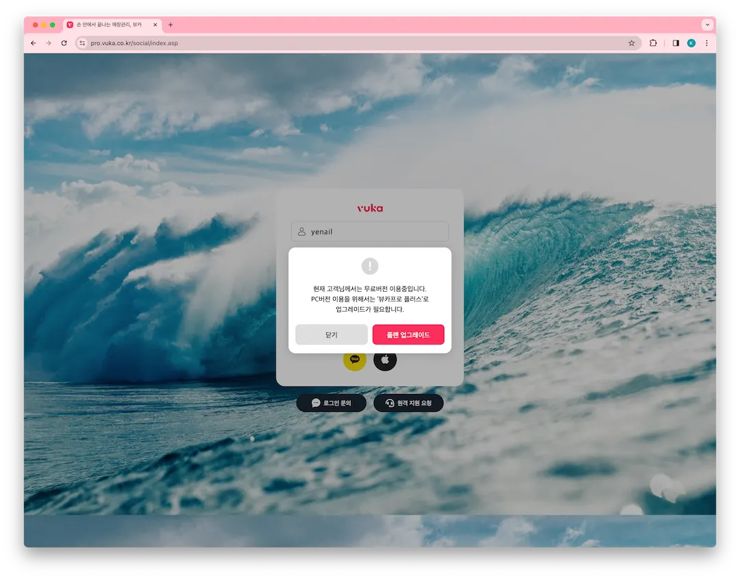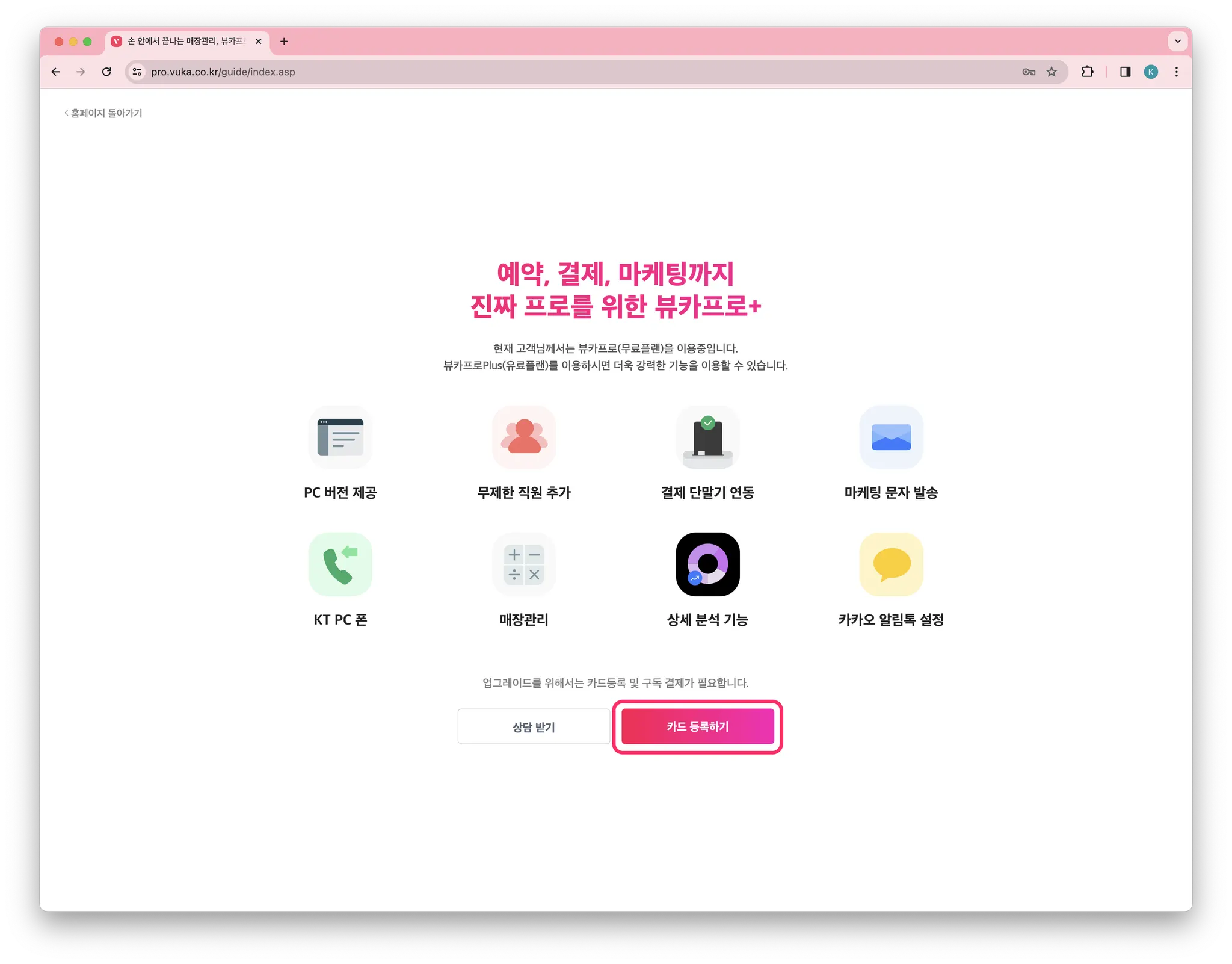 뷰카 앱에서는 플랜 업그레이드를 할 수 없습니다. 꼭 뷰카 홈페이지에서 신청해 주세요.