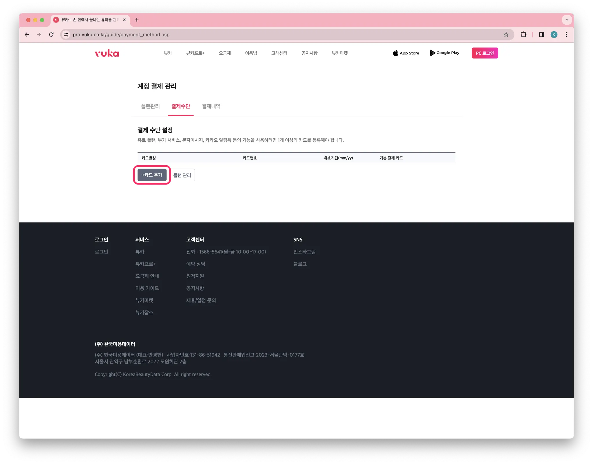 카드 추가 버튼을 눌러 결제할 카드 정보를 입력해 주세요.