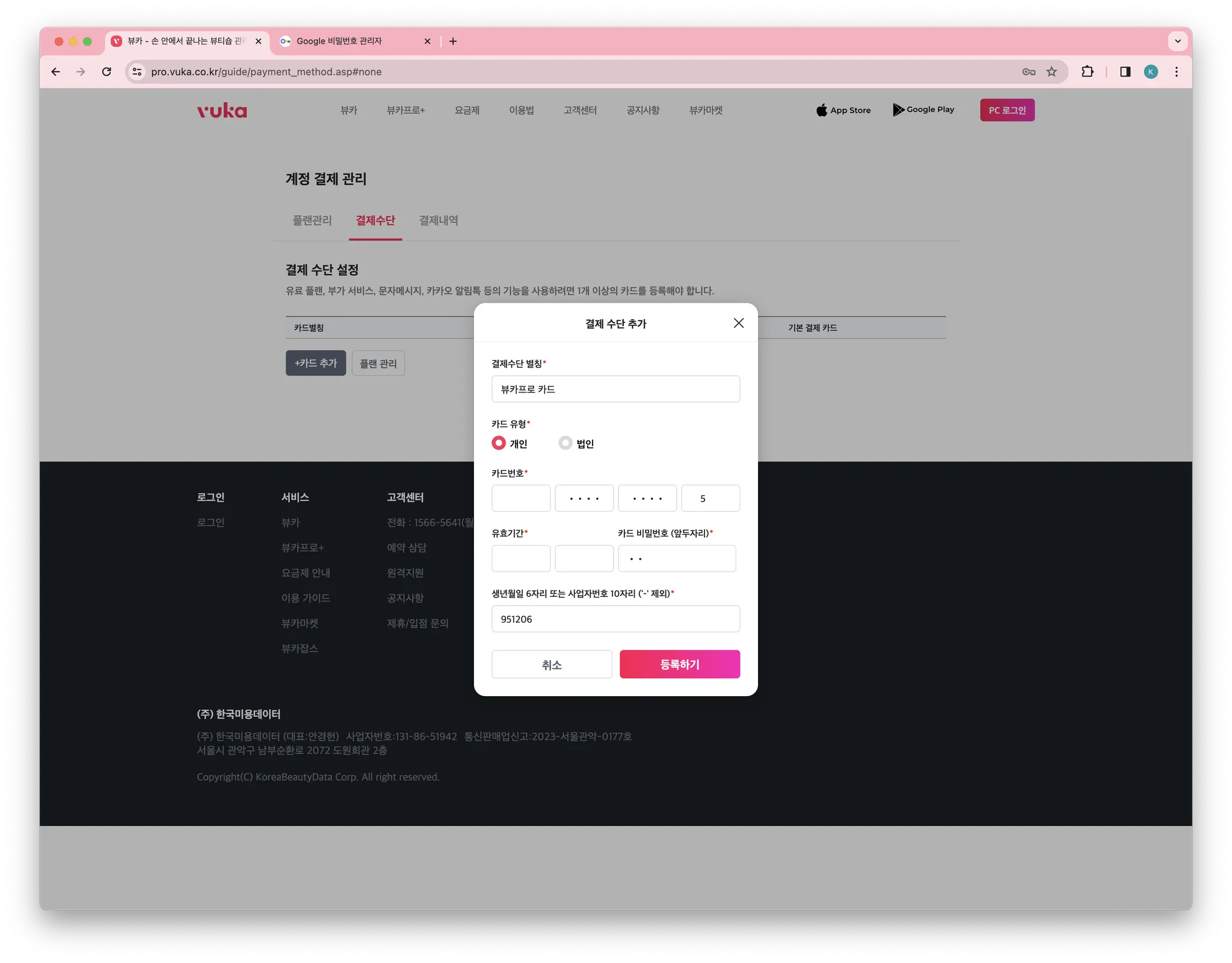 화면 하단에 카드등록하기 버튼을 눌러주세요.