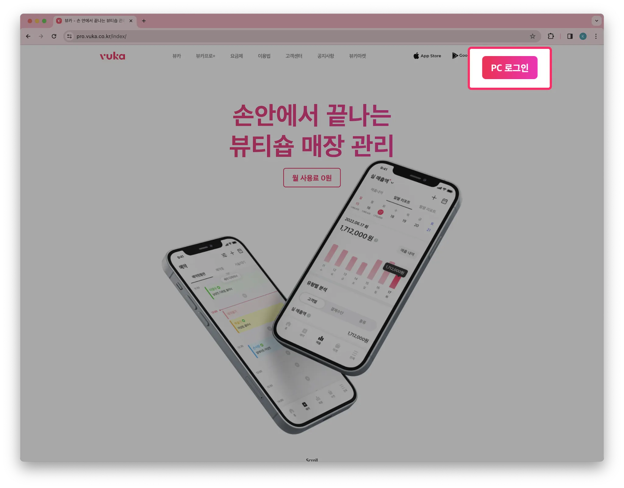 PC버전 지원과 인원 제한 없이 사용한 뷰카 [프로+] 플랜을 이용하고 싶다면 이제 간편하게 뷰카 홈페이지에서 신청하세요.