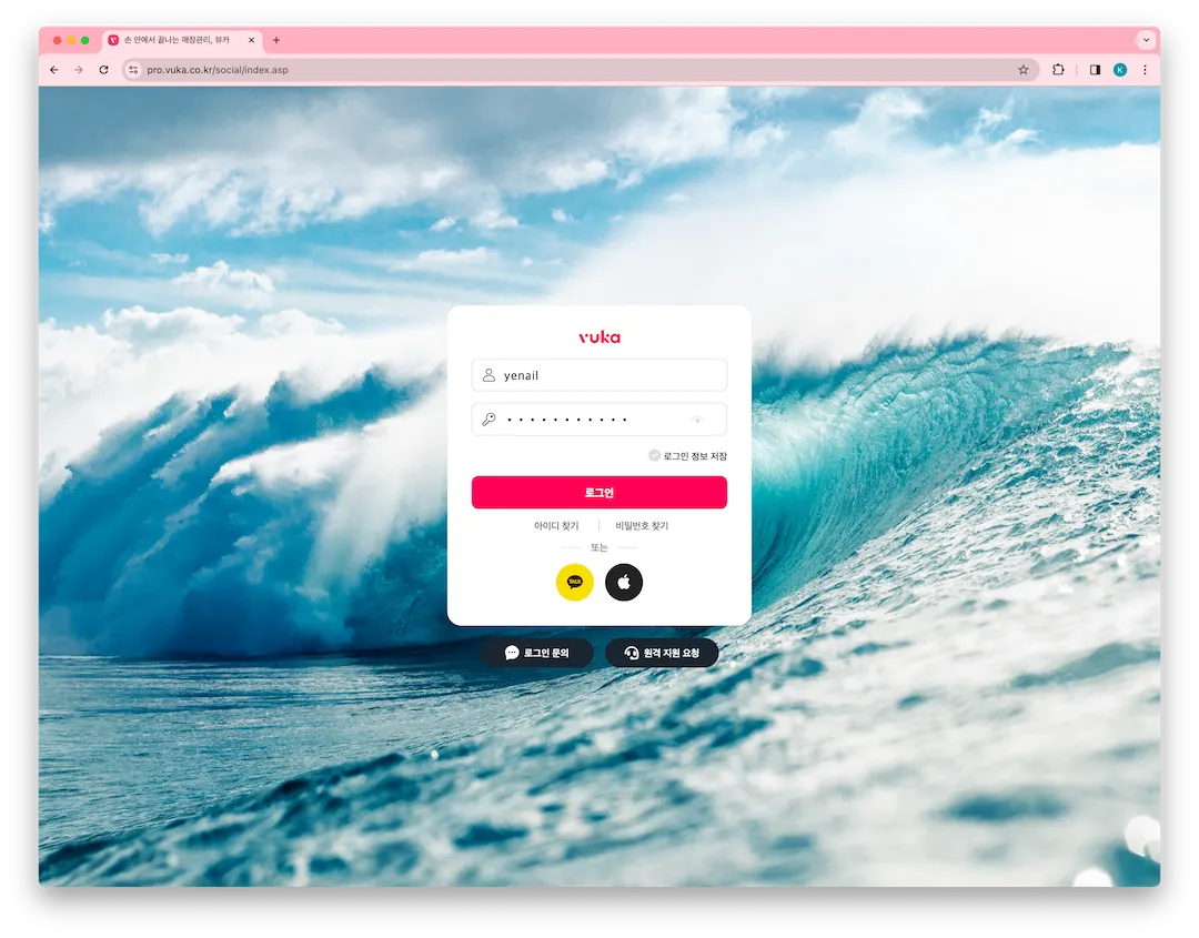 뷰카 아이디와 비밀번호를 입력 후 로그인을 진행해 주세요.