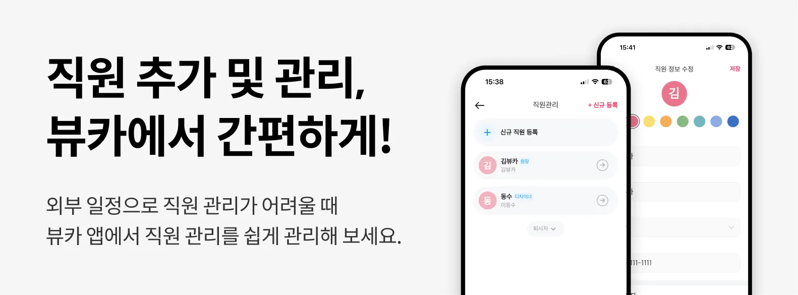 이제 뷰카 앱에서 직원 관리를 쉽고 간편하게 관리해 보세요.