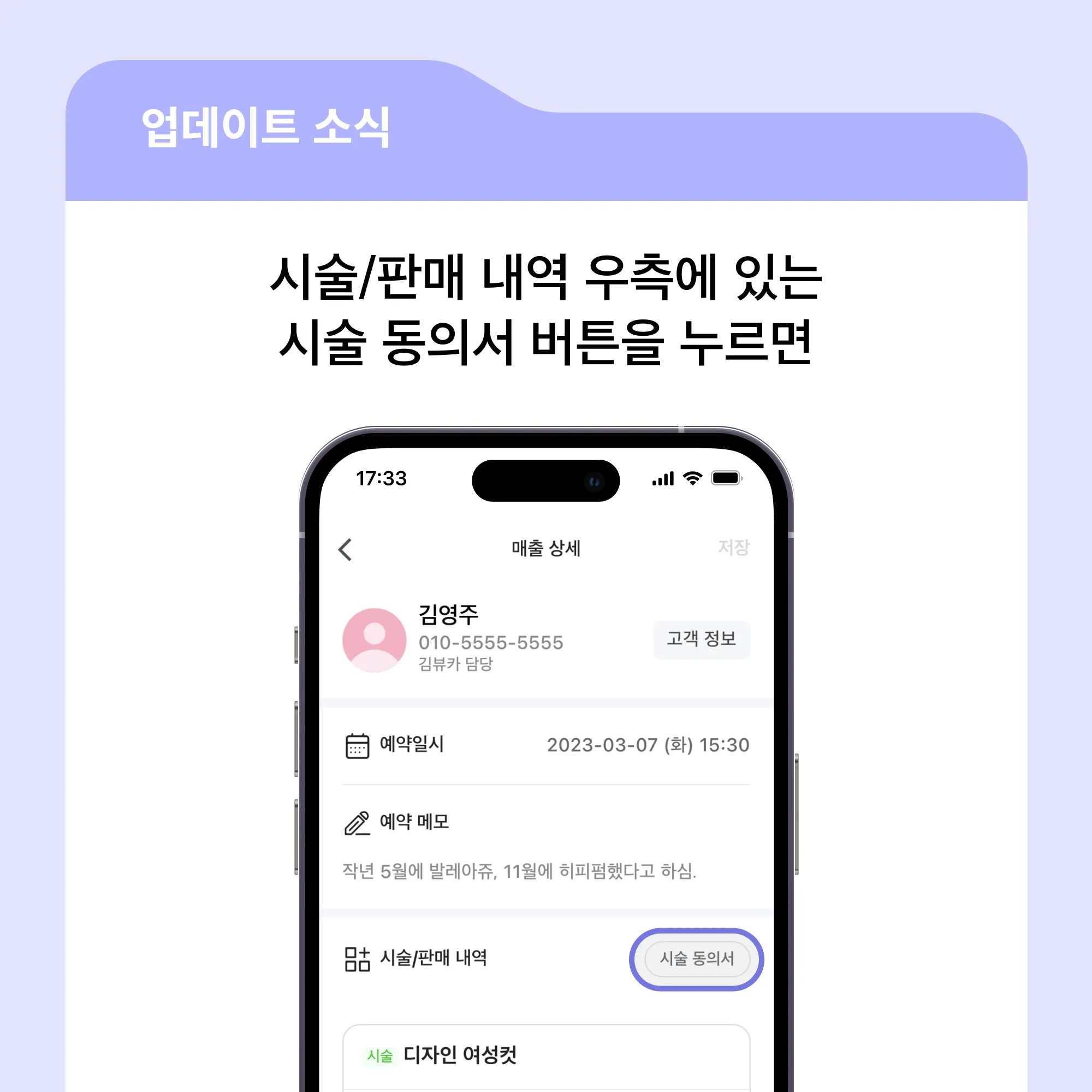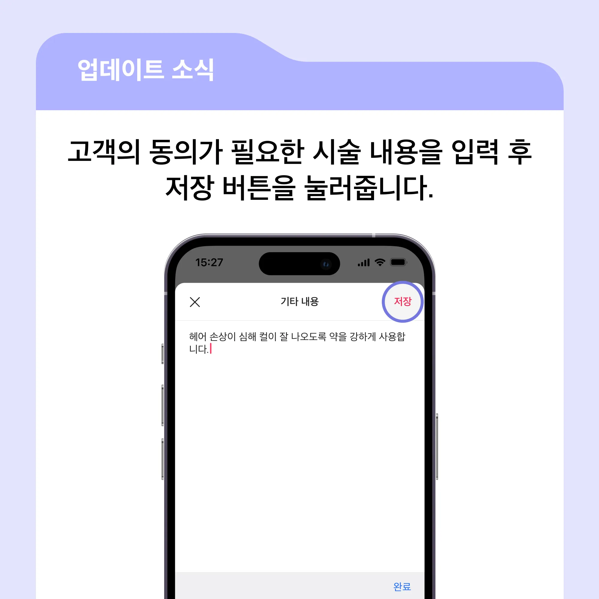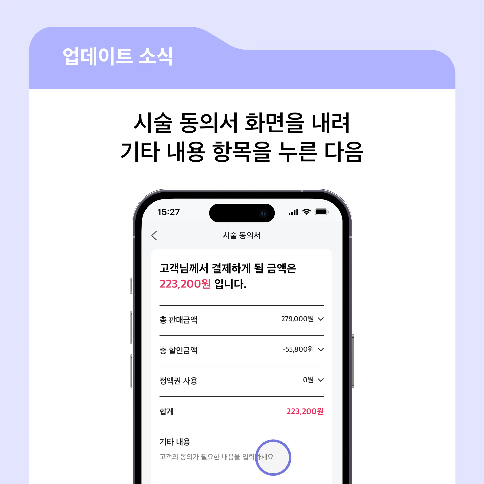 • 시술 동의서 작성 시 고객의 동의가 꼭 필요한 내용을 직접 입력할 수 있도록 기타 내용 입력 기능이 추가되었습니다.