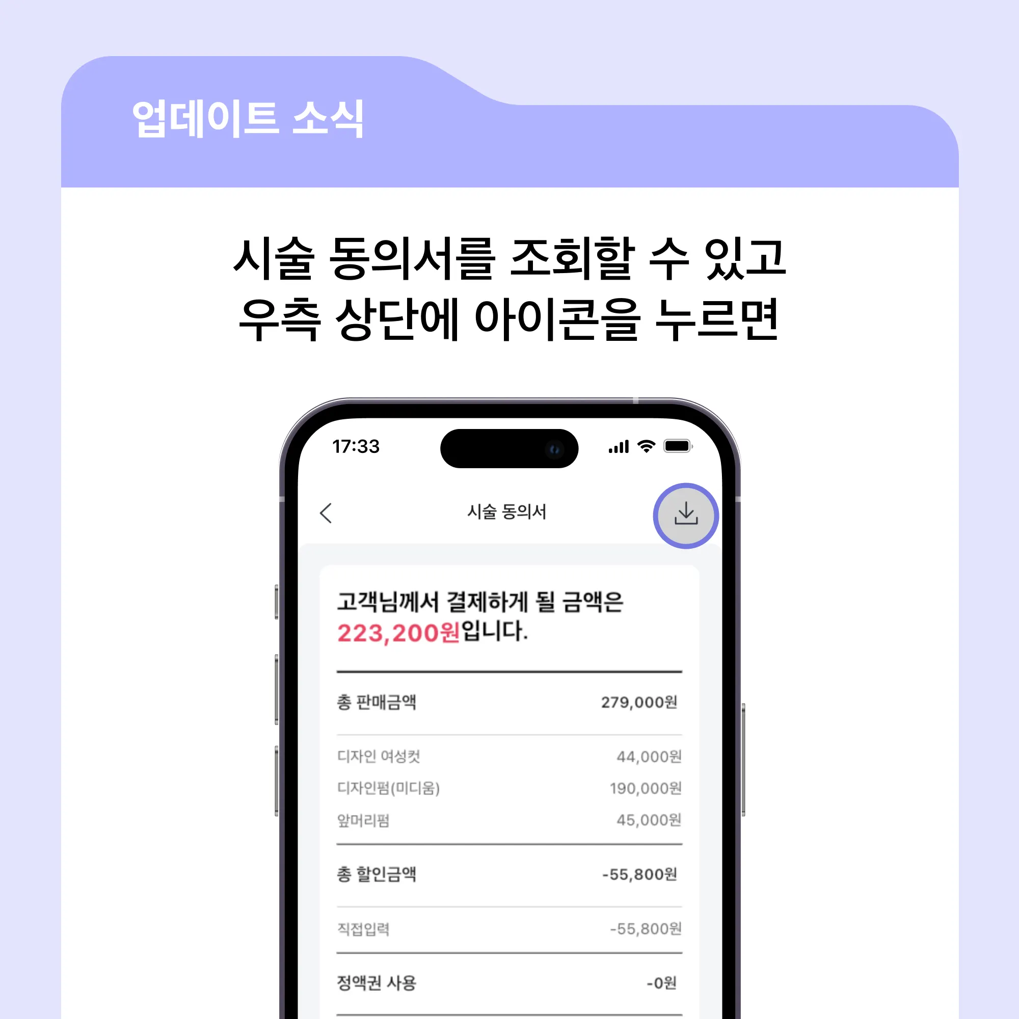 • 작성된 시술 동의서 조회 및 저장 기능이 추가되었습니다.