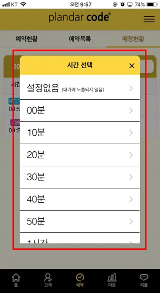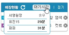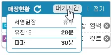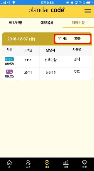 플랜더코드 > 예약 > 매장현황에서 대기시간 표시부분을 터치하세요.