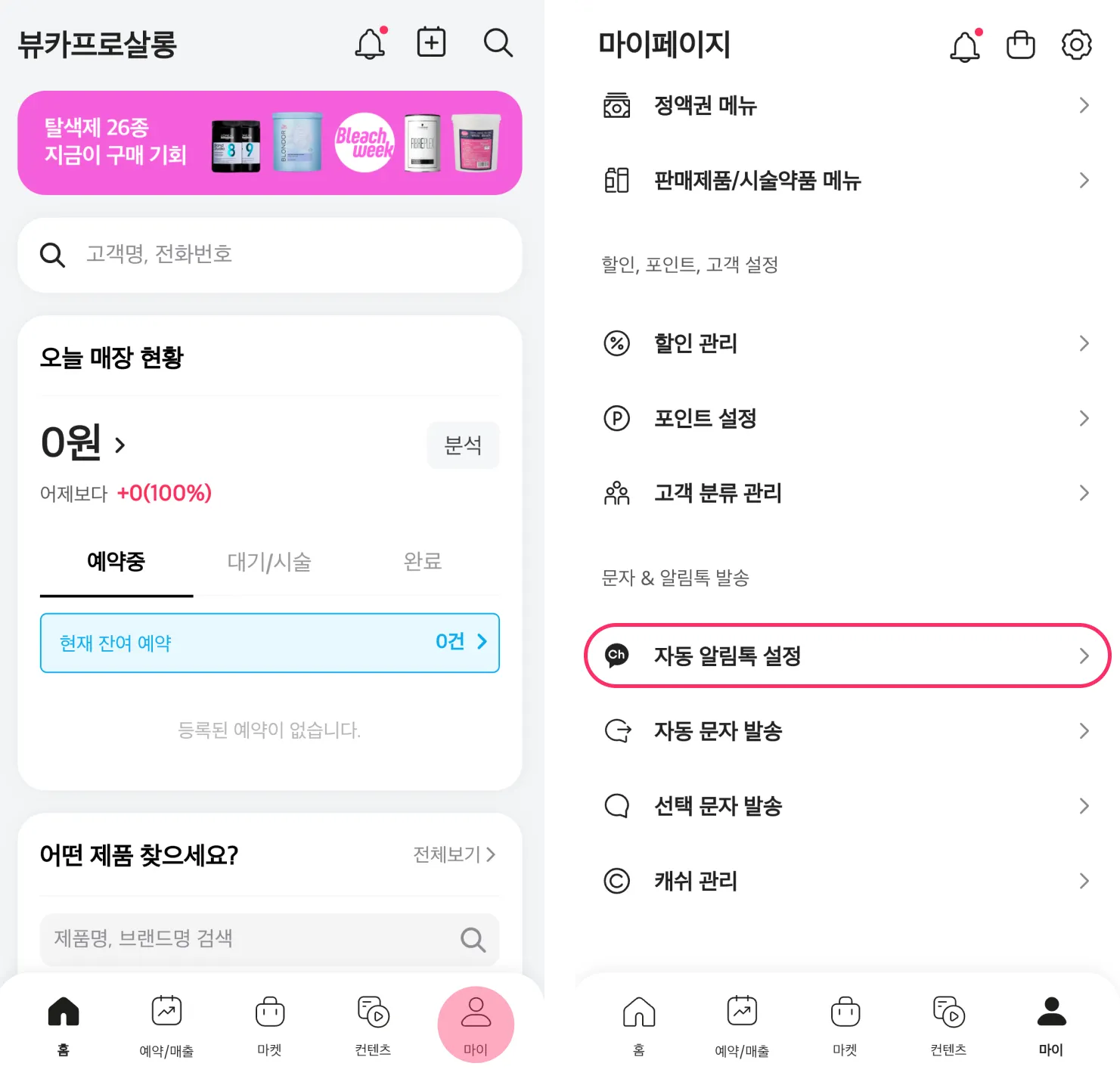 뷰카 APP에서 알림톡 모바일 영수증 설정하는 방법!