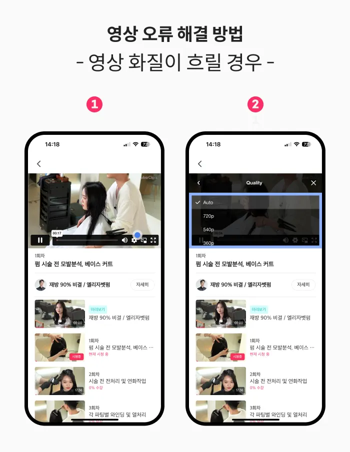 영상 화질이 낮아 시청이 불편하시다면 인터넷/와이파이 연결 상태를 확인해 주세요.