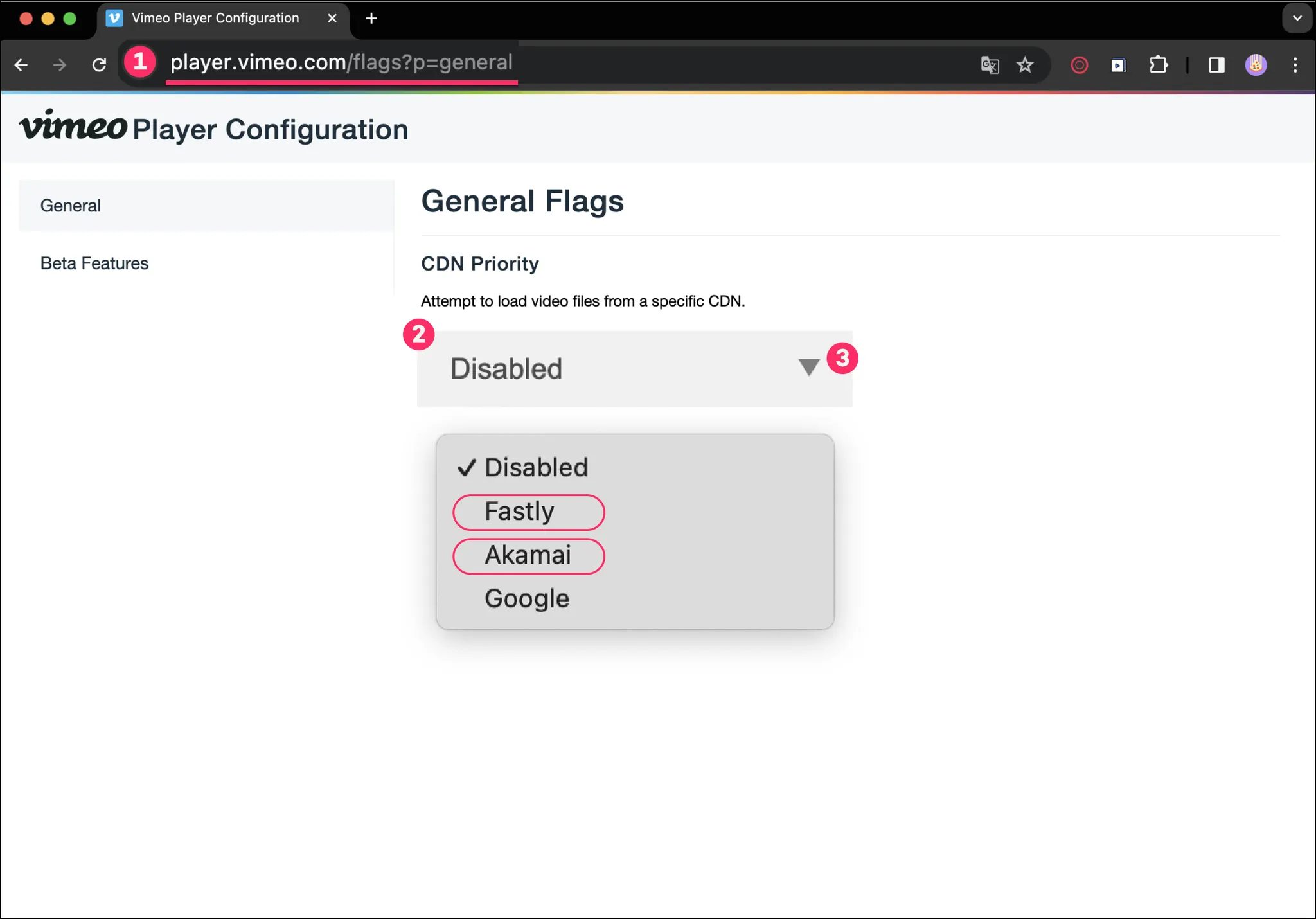 https://player.vimeo.com/flags?p=general 사이트에 접속합니다.