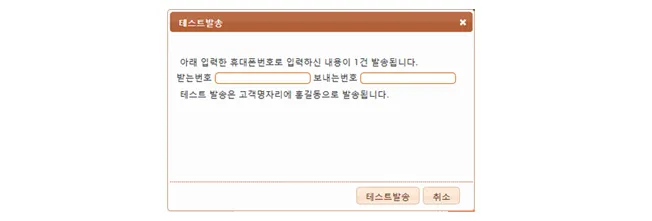 9. 문자 입력이 완료되면 테스트 발송 버튼을 클릭하여 테스트 전화번호로 미리 받아 확인할 수 있습니다.