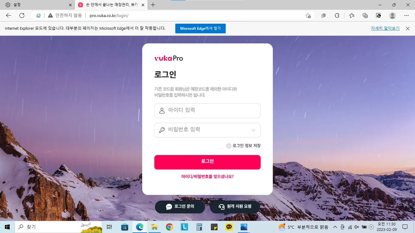 Microsoft Edge 브라우저를 Internet Explorer를 전환하는 방법을 알아보았습니다! 이번에는 뷰카프로+ 로그인 화면 실행 시 자동으로 Internet Explorer 모드로 변경되는 방법을 알려드릴게요.