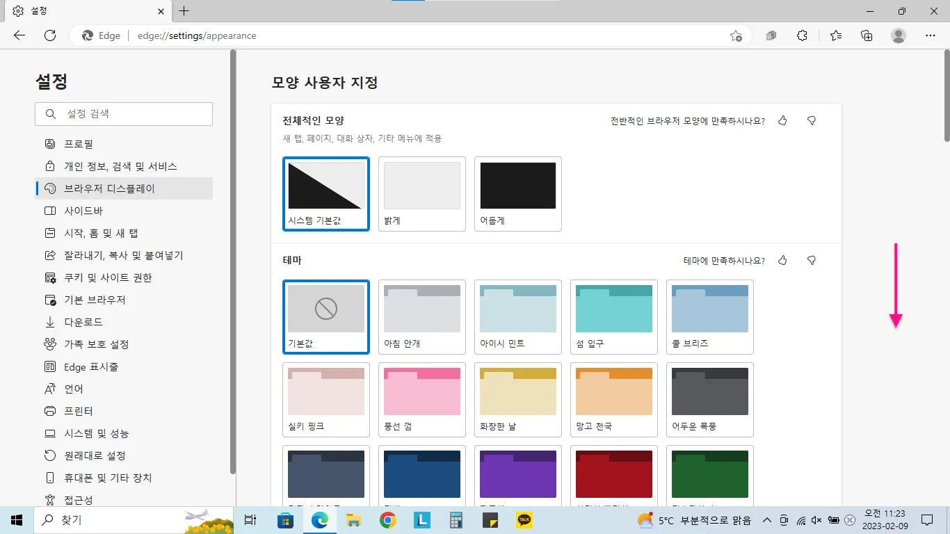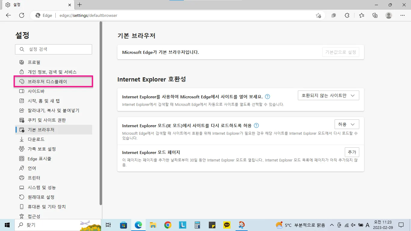 그다음 좌측 설정 항목에 브라우저 디스플레이를 눌러주세요.